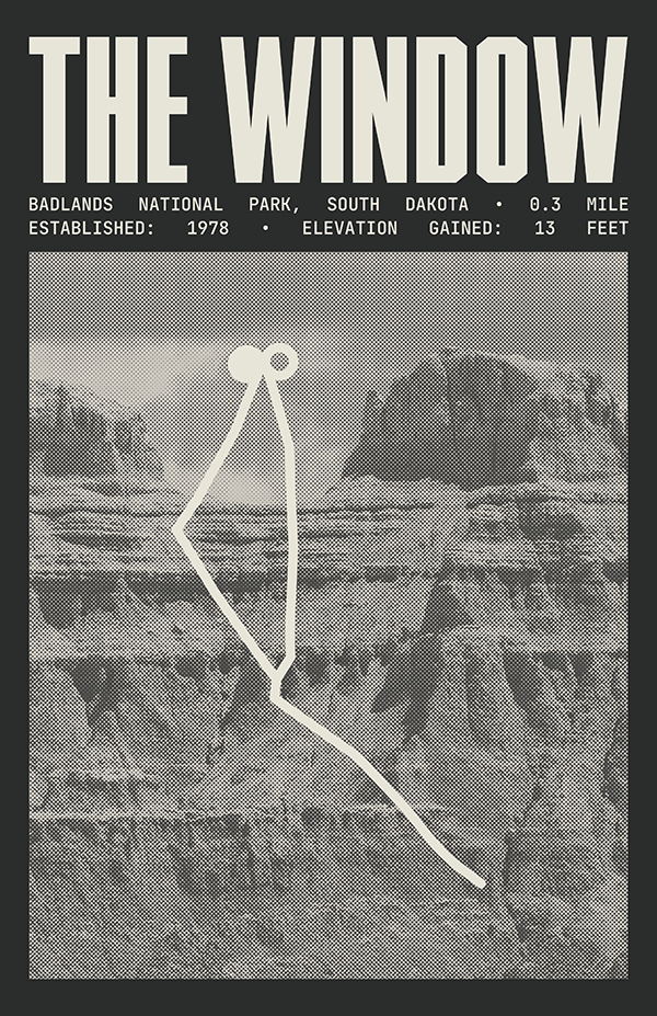 The Door Trail Art Prints provided by Park-Poster showcase the stunning beauty of Badlands National Park and its iconic Door Trail. These prints capture the essence of the trail, highlighting the unique geological features, including the natural “door” in the rock formations, and the sweeping vistas of the White River Valley. The artwork features rich colors and detailed renderings that emphasize the park’s dramatic cliffs and rugged landscape. Perfect for nature enthusiasts or anyone who has experienced the trail, these art prints serve as a timeless reminder of the park’s breathtaking scenery. They are an ideal addition to any home or collection, bringing the spirit of the Badlands into any space.