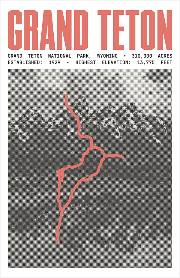 Our exquisitely curated selection of National Park prints, like our modern-day depictions of Grand Teton National Park, serves as more than wall art. These vibrant prints capture the stunning landscapes and unique geologic formations, evoking memories of your park adventures. These posters reflect your journey and highlight your achievements, reminding you of your exploration and the significance of preserving these natural marvels for future explorers.