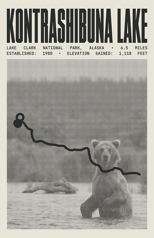 The Beaver Pond Loop Poster Art offered by park-poster is a stunning visual representation of one of Lake Clark National Park's most serene and picturesque trails. The design highlights the trail’s natural beauty, with vibrant greens and earthy tones capturing the lush forests, tranquil ponds, and abundant wildlife that make the loop a favorite among visitors. The artwork might feature a peaceful scene of a beaver dam nestled in the foreground, surrounded by dense vegetation and reflective waters, while the distant mountains and skies provide a sense of scale and grandeur. The composition is crafted to evoke a sense of calm and wonder, inviting adventurers and nature lovers to experience the park's pristine wilderness from the comfort of their homes. The poster art offers a beautiful homage to this hidden gem of Alaska, perfect for anyone who has trekked the trail or dreams of exploring it.