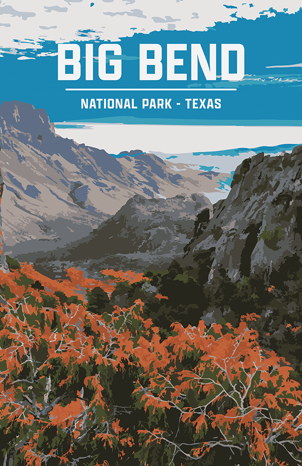 Our exquisitely curated selection of National Park prints, like our modern-day depictions of Big Bend National Park, serves as more than wall art. These vibrant prints capture the stunning landscapes and unique geologic formations, evoking memories of your park adventures. These posters reflect your journey and highlight your achievements, reminding you of your exploration and the significance of preserving these natural marvels for future explorers.