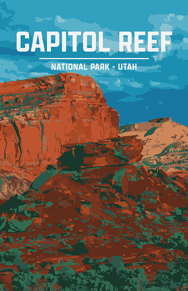 Our exquisitely curated selection of National Park prints, like our modern-day depictions of Capitol Reef National Park, serves as more than wall art. These vibrant prints capture the stunning landscapes and unique geologic formations, evoking memories of your park adventures. These posters reflect your journey and highlight your achievements, reminding you of your exploration and the significance of preserving these natural marvels for future explorers.