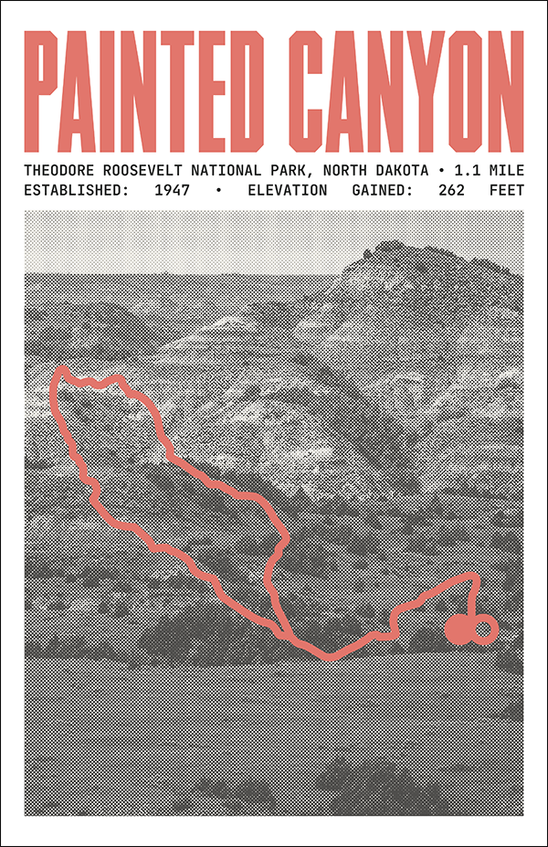 The Caprock Coulee Loop Art Prints provided by Park-Poster beautifully capture the dramatic landscapes of one of Theodore Roosevelt National Park's most scenic trails. These high-quality prints showcase the unique terrain of the Caprock Coulee Loop, with its striking rock formations, sweeping ravines, and expansive prairies. The artwork highlights the vibrant colors and intricate details of the park’s rugged beauty, featuring wildlife and stunning vistas that are characteristic of the trail. Perfect for nature lovers and outdoor enthusiasts, these art prints serve as a striking reminder of the trail’s natural splendor and are a great addition to any home or office décor.