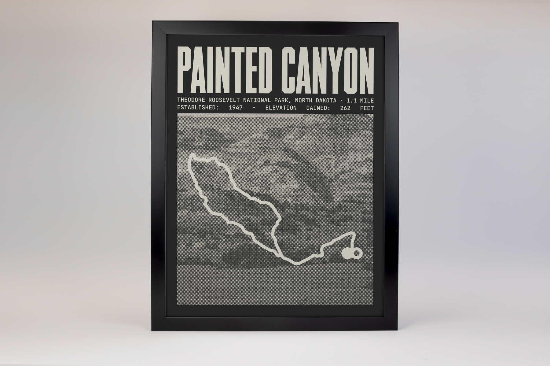 The Painted Canyon Nature Trail Poster Art from Park-Poster elegantly captures the striking beauty of one of Theodore Roosevelt National Park’s most scenic hikes. The artwork showcases the vibrant red, orange, and purple rock layers that characterize the Painted Canyon, emphasizing the park’s unique geology. With rich colors and intricate details, the poster highlights the sweeping views of the canyon and the surrounding prairie, evoking the trail's serene and picturesque atmosphere. Perfect for nature enthusiasts, this poster brings the breathtaking beauty of the Painted Canyon Nature Trail into any home or office, making it an inspiring addition to any space.